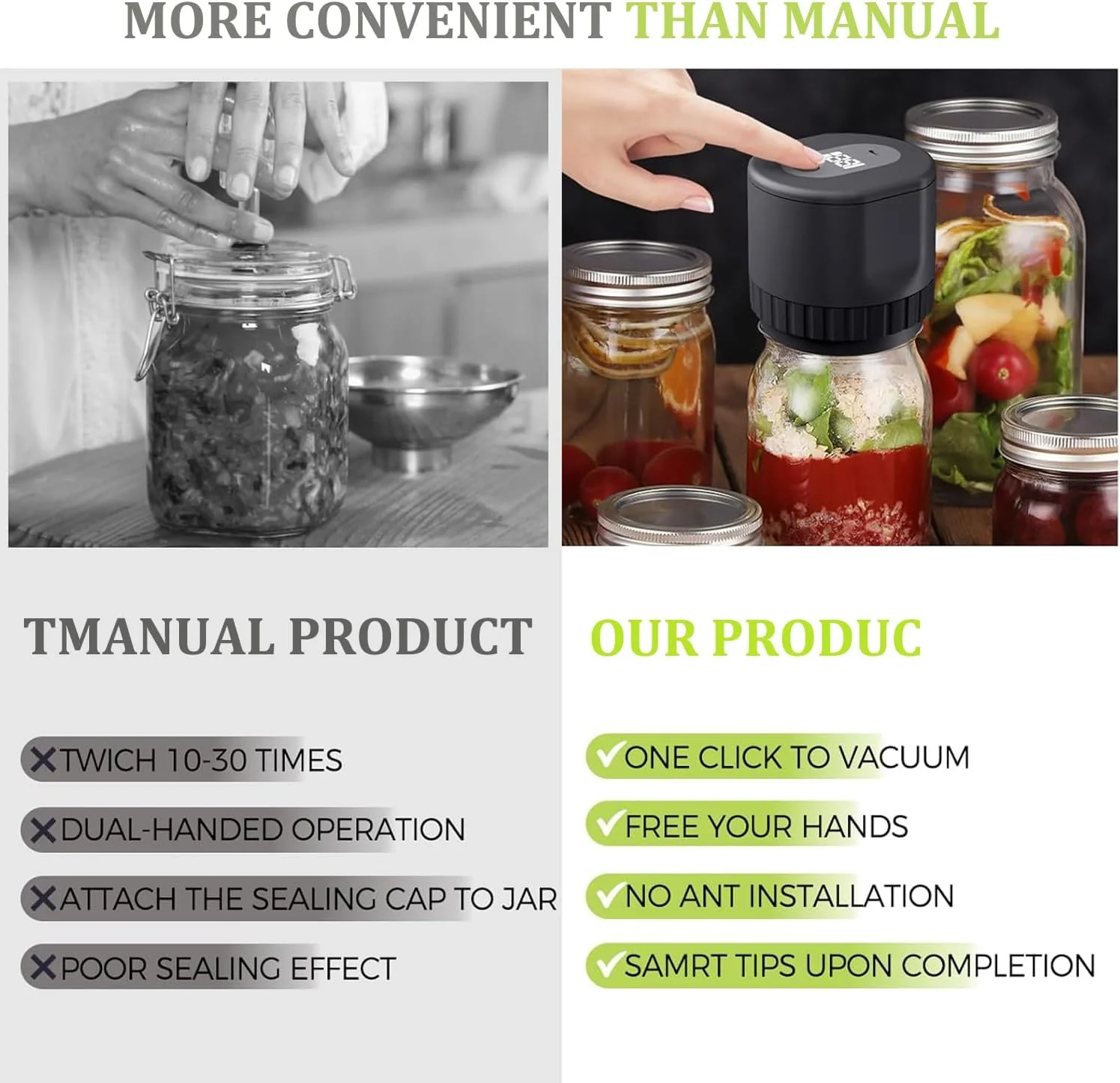 Automatic Sealing: Efficiently seals Mason jars with minimal effort.
