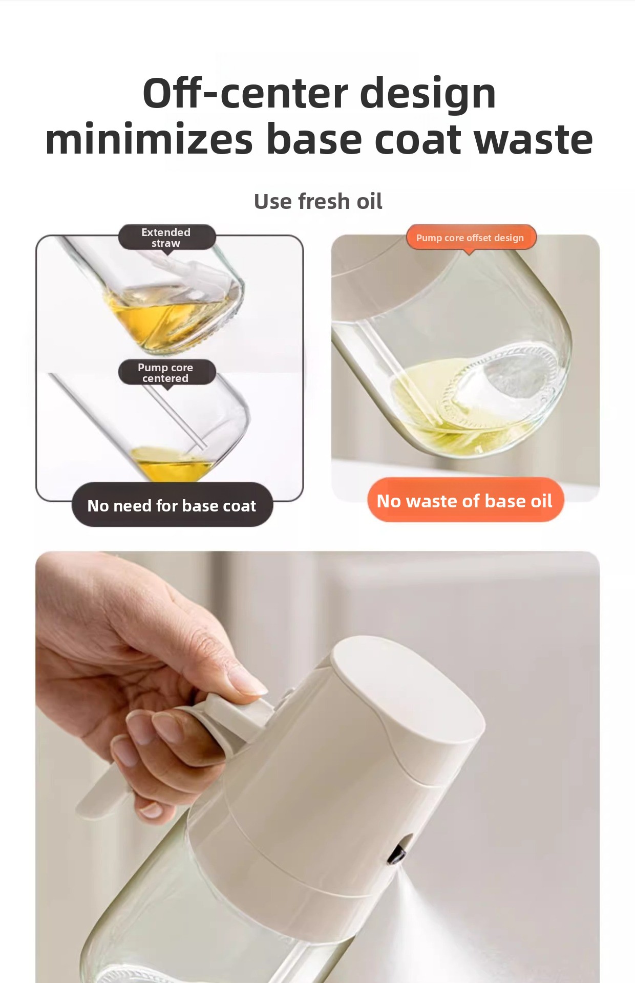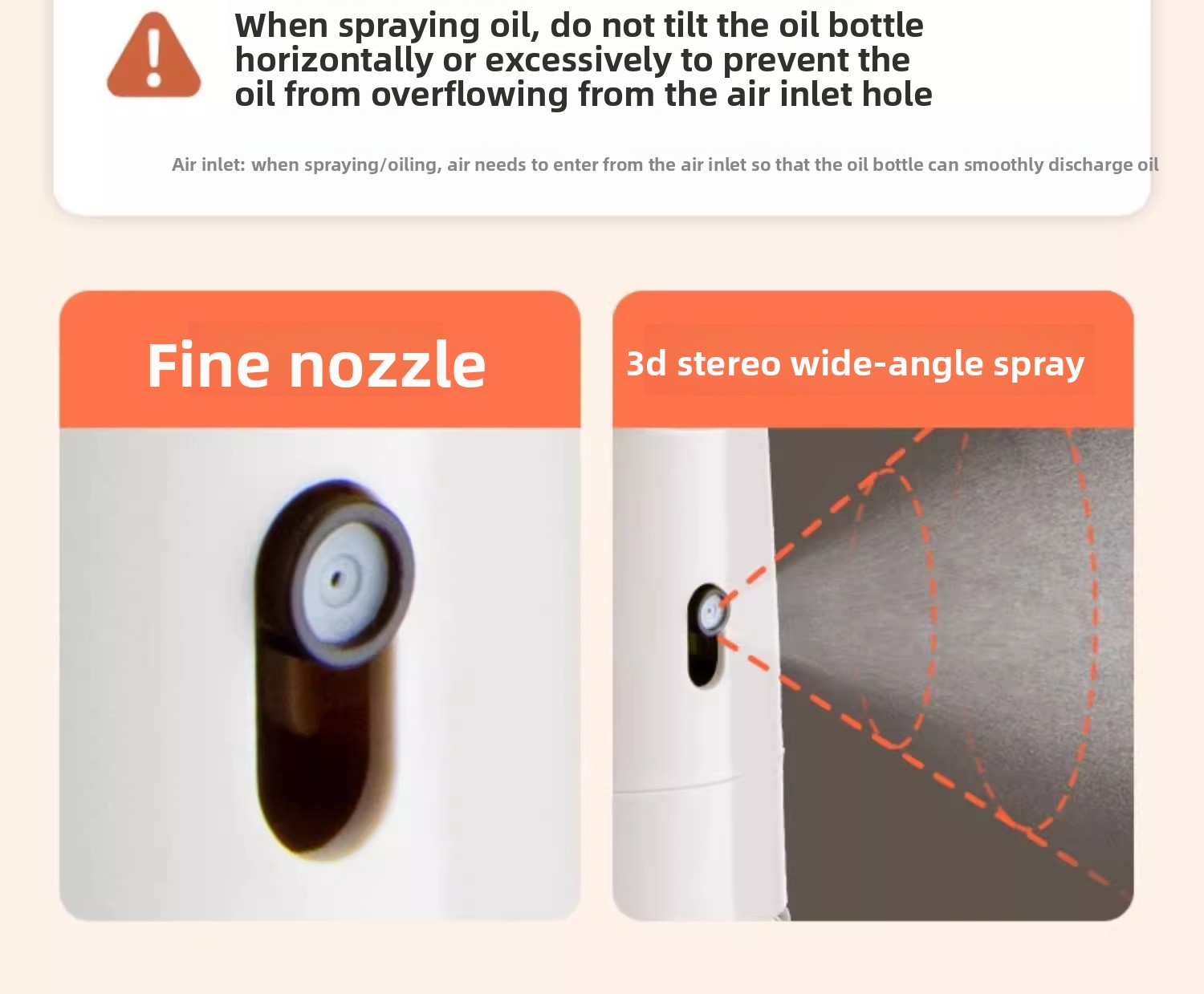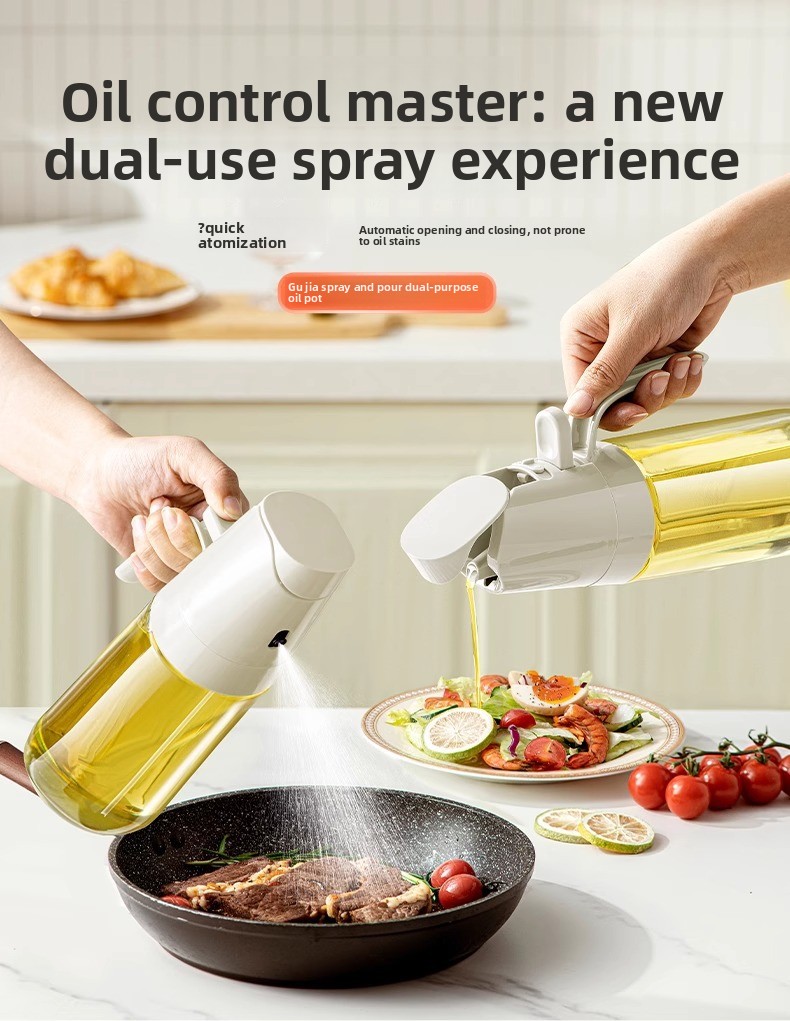 Dual-function design: Combines atomized oil spraying and gravity pouring in one bottle
