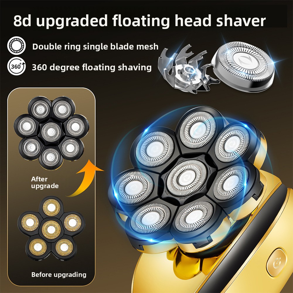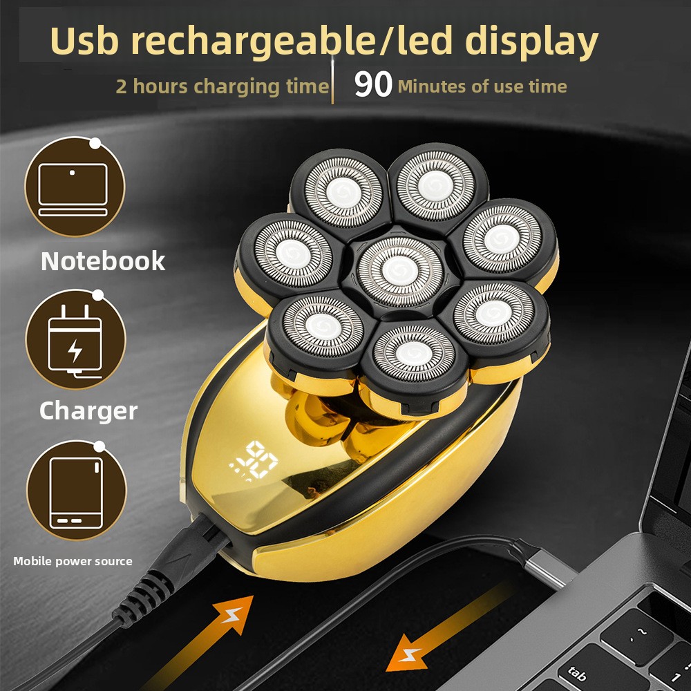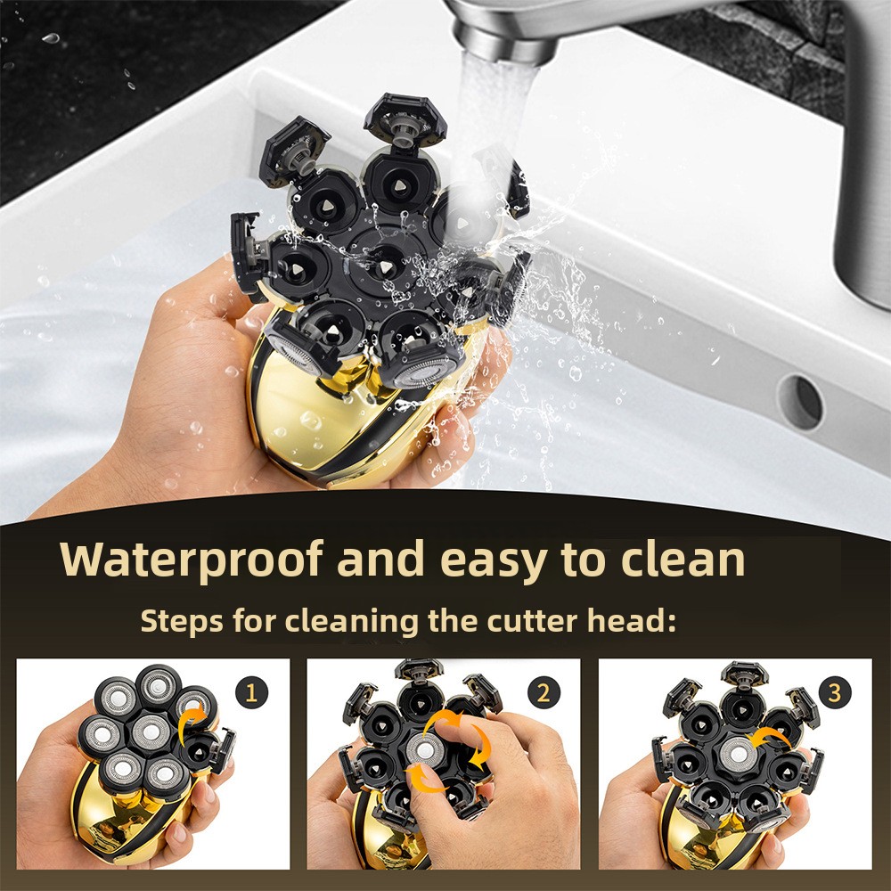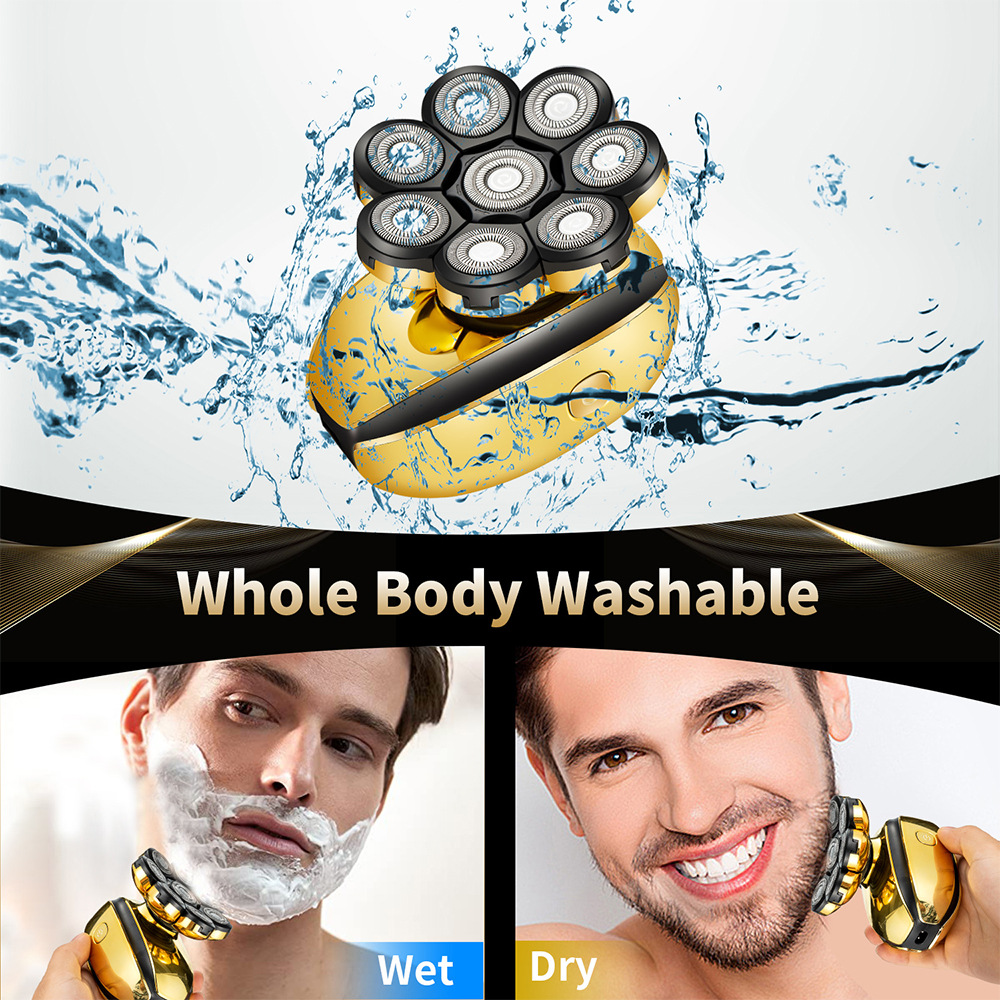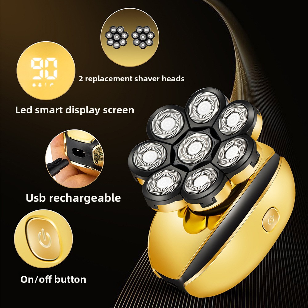 Eight-Blade System: Rotary multi-cutter head for efficient and close shaving.